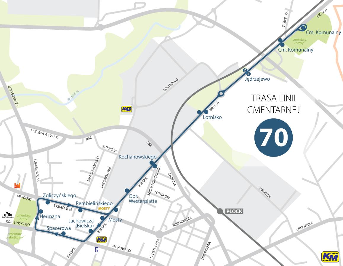 Już w sobotę i niedzielę 24 i 25 października 2020 r. na trasę między dwoma największymi płockimi cmentarzami wyjadą autobusy linii cmentarnej 70.