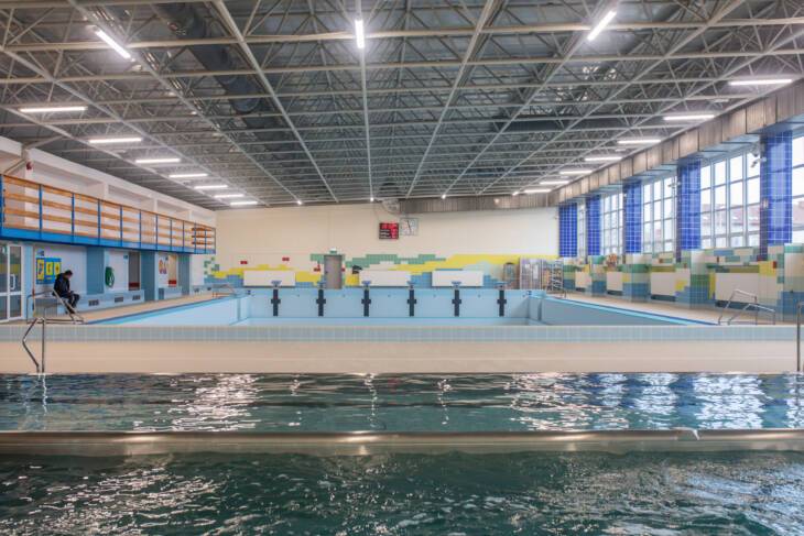 Prace prowadzono również na dachu nad częścią administracyjną. Odmalowano halę basenową, uzupełniono brakujące płytki oraz pokryto farbą antykorozyjną konstrukcję dachu. Dokończono montaż oświetlenia awaryjnego i ewakuacyjnego w szatniach, korytarzach, w części technicznej basenu oraz na parterze.