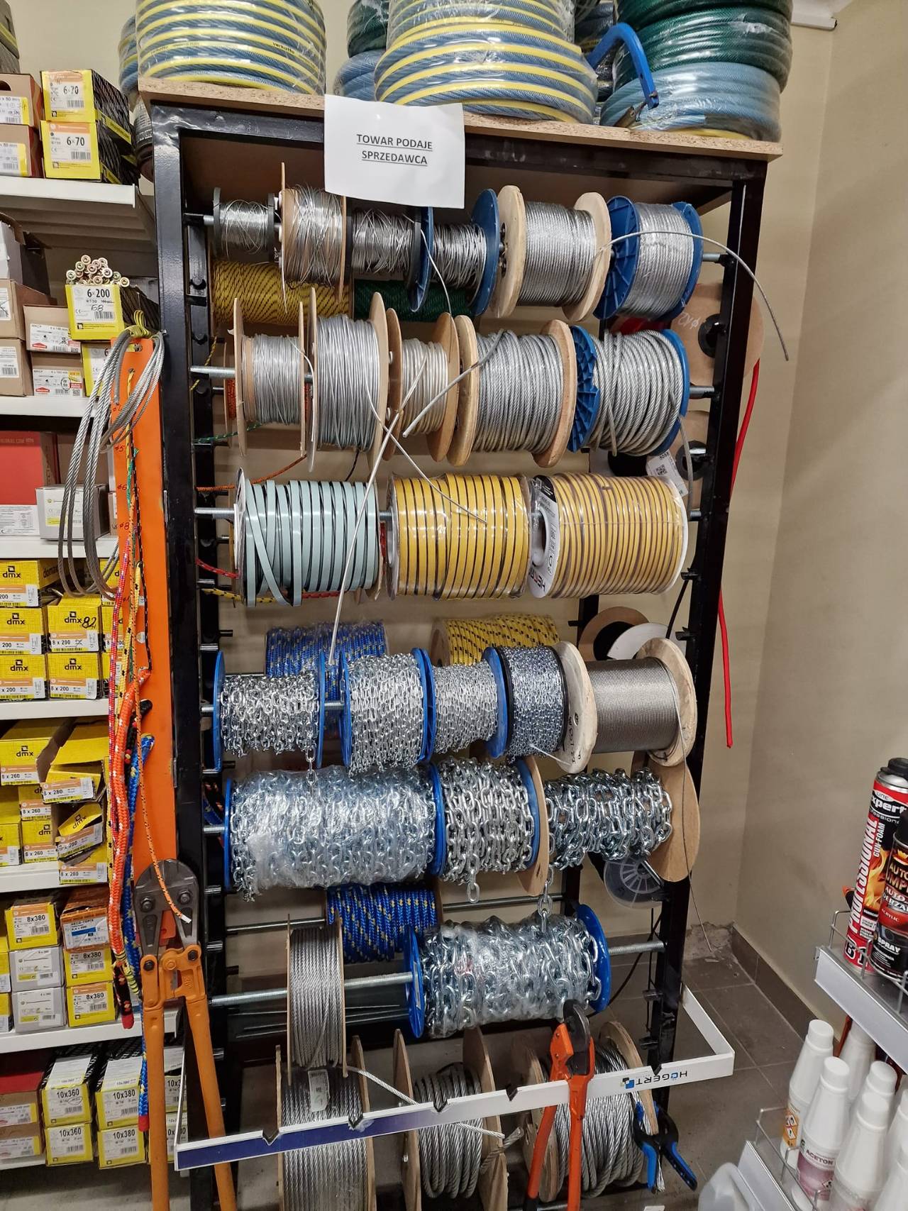 Znajdziecie u nas: Śruby (metryczne w klasach 8.8, 10.9, 12.9, drobnozwojne w klasach 10.9, 12.9, zamkowe, calowe na gwincie UNC i UNF, nierdzewne A2 i kwasoodporne A4), szpilki dwugwintowe, pręty gwintowane, nakrętki, nakrętki zrywalne A2, podkładki (Din125, Din9021, Din 440, sprężynowe, sprężynowe stożkowe, ząbkowane, Nord-Lock), Wkręty (czarne, hartowane i ciesielskie), pchełki i blachowkręty, narzędzia ręczne, elektronarzędzia Milwaukee, Bhp, okucia ciesielskie, wiertła, noże tokarskie, frezy, kołki i systemy zamocowań, chemia techniczna, liny stalowe, kwasoodporne i polipropylenowe z osprzętem, łańcuchy, wkładki zamkowe, kłódki, zawiesia pasowe. Ponadto: poziomice, wałki, pędzle, plandeki, szpadle, łopaty itd.
